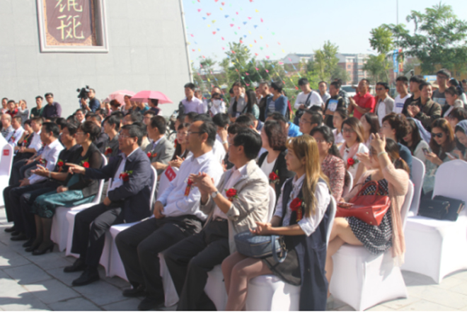 (寧夏自治區(qū)銀川市人民政府副市長(zhǎng)李鴻儒,銀川市委常委、宣傳部部長(zhǎng)王瑋等領(lǐng)導(dǎo)一起為基地揭開紅布)