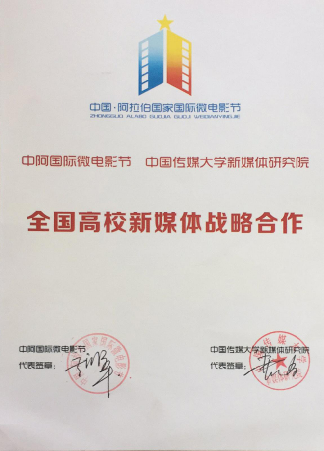 2016年8月承辦了由銀川市政府、銀川經(jīng)濟(jì)技術(shù)開發(fā)區(qū)主辦的2016中國(guó)阿拉伯國(guó)家國(guó)際微電影節(jié)。會(huì)議期間我司與金紫荊國(guó)際新媒體電影節(jié)簽訂《友好戰(zhàn)略合作》;與中國(guó)網(wǎng)微電影頻道簽訂《新媒體平臺(tái)合作》;與中國(guó)傳媒大學(xué)新媒體研究院簽訂《全國(guó)高校新媒體戰(zhàn)略合作》。