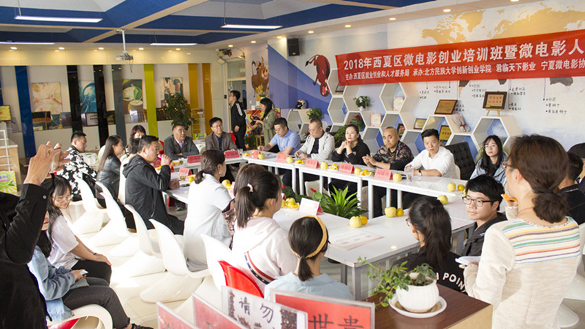 本次培訓(xùn)及沙龍旨在進一步提升以創(chuàng)新創(chuàng)業(yè)帶動更多就業(yè),擴大就業(yè)和改善民生,全力做好創(chuàng)業(yè)幫扶和服務(wù),由西夏區(qū)就業(yè)創(chuàng)業(yè)和人才服務(wù)局主辦,北方民族大學(xué)創(chuàng)新創(chuàng)業(yè)學(xué)院、君臨天下影業(yè)、寧夏微電影協(xié)會北民大分會共同承辦的。