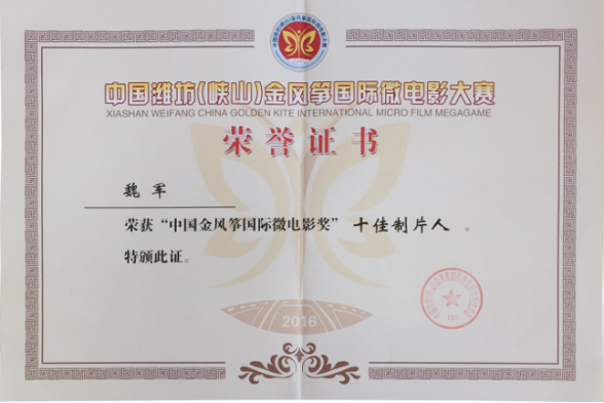 2016年 榮獲中國(guó)金風(fēng)箏國(guó)際微電影獎(jiǎng)“十佳制片人”稱號(hào)。